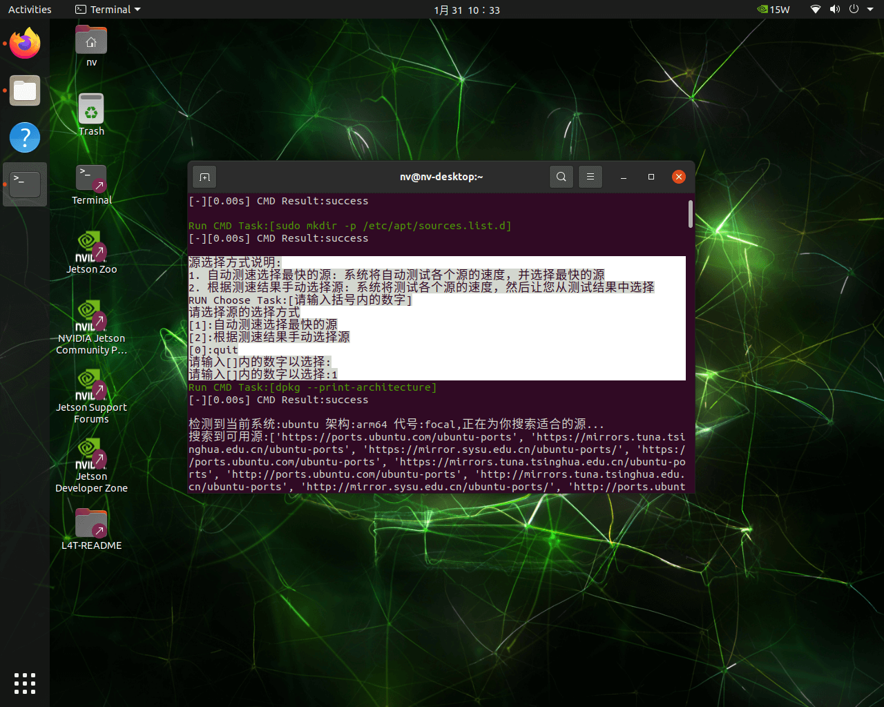 - 更换apt源下载会更快