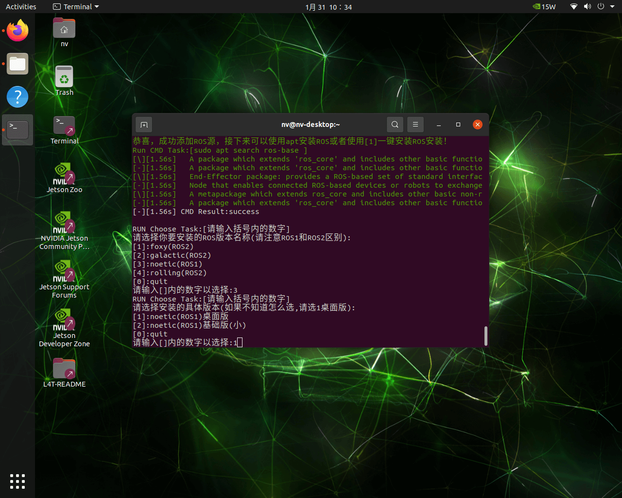 - 选择1进行ROS安装